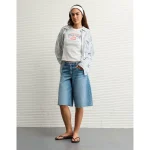 AE 11″ Dreamy Drape Stretch High-Waisted Jort – Light Tinted Wash
