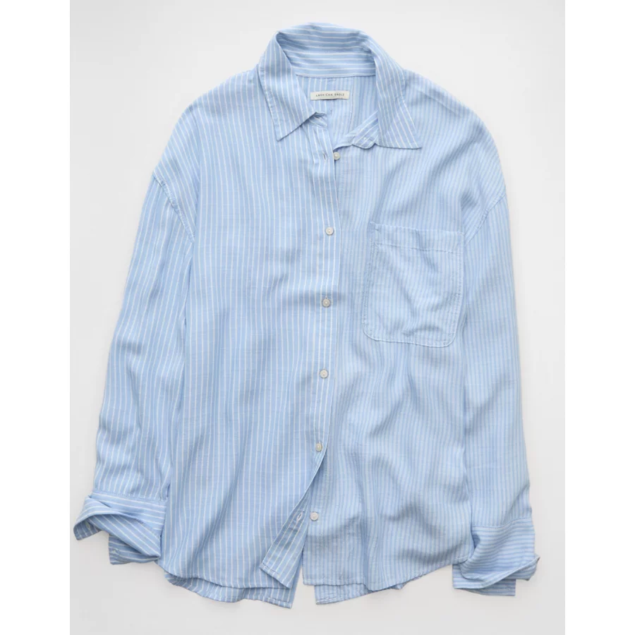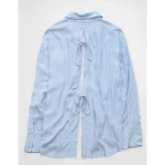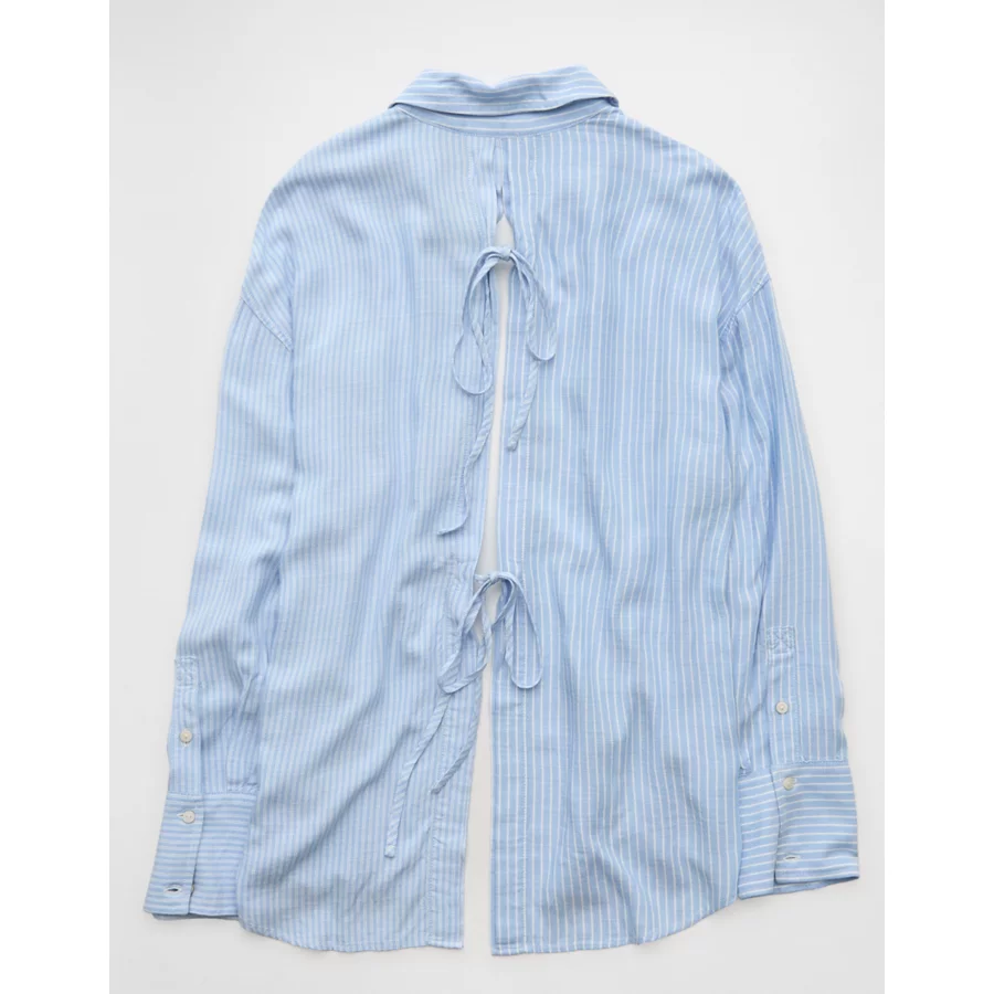 AE Long-Sleeve Tie Back Button-Up Shirt – Sky Blue
