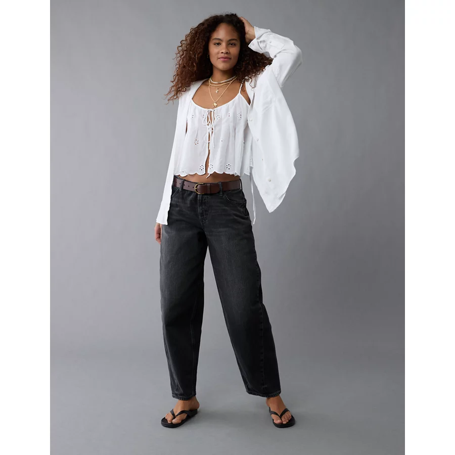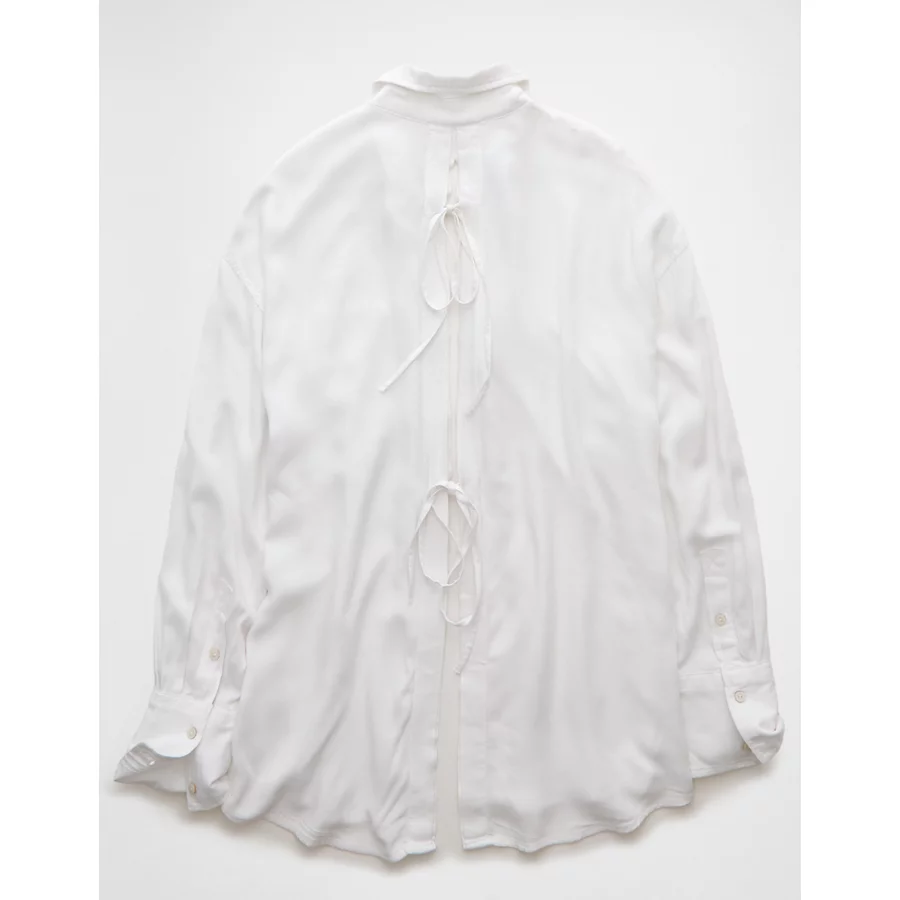 AE Long-Sleeve Tie Back Button-Up Shirt – White