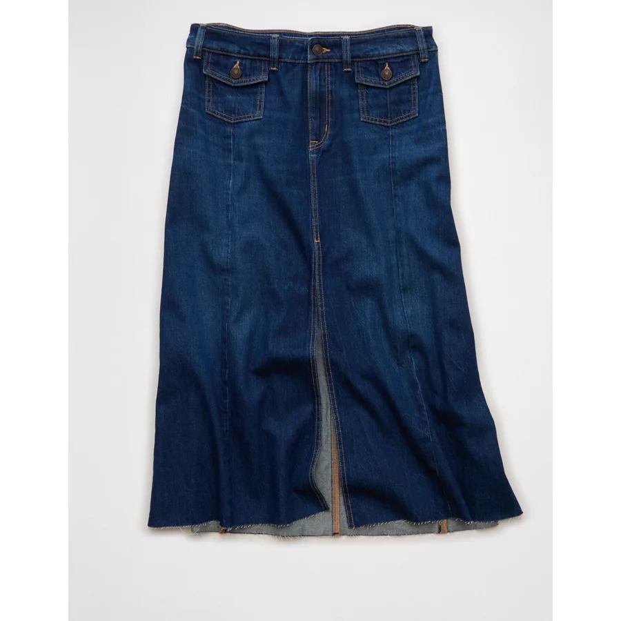 AE Low-Rise A-Line Denim Midi Skirt – Dark Wash
