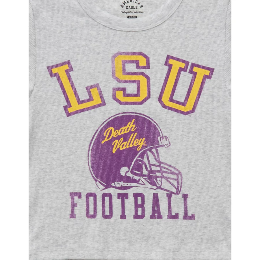 AE LSU Tigers Graphic Cropped Baby Tee – Medium Heather Gray