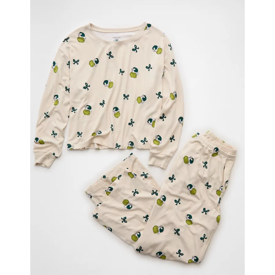 AE Luxe Plush Grinch PJ Pant Set – Cream