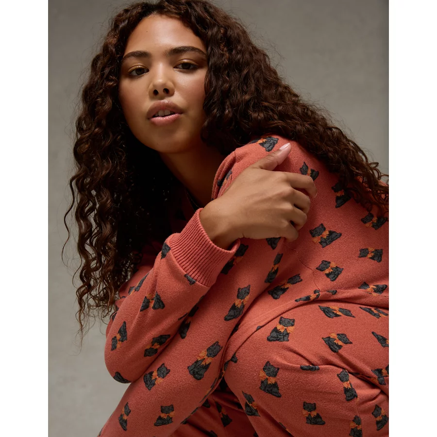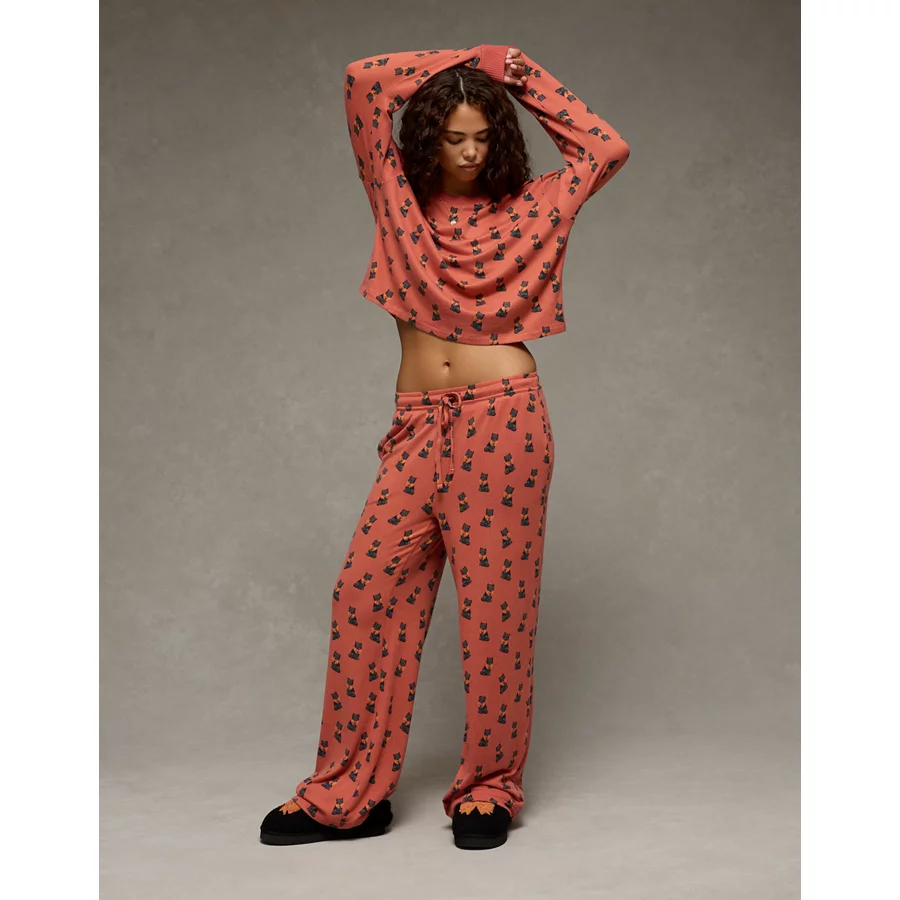 AE Luxe Plush Long-Sleeve & Pant PJ Set – Cognac