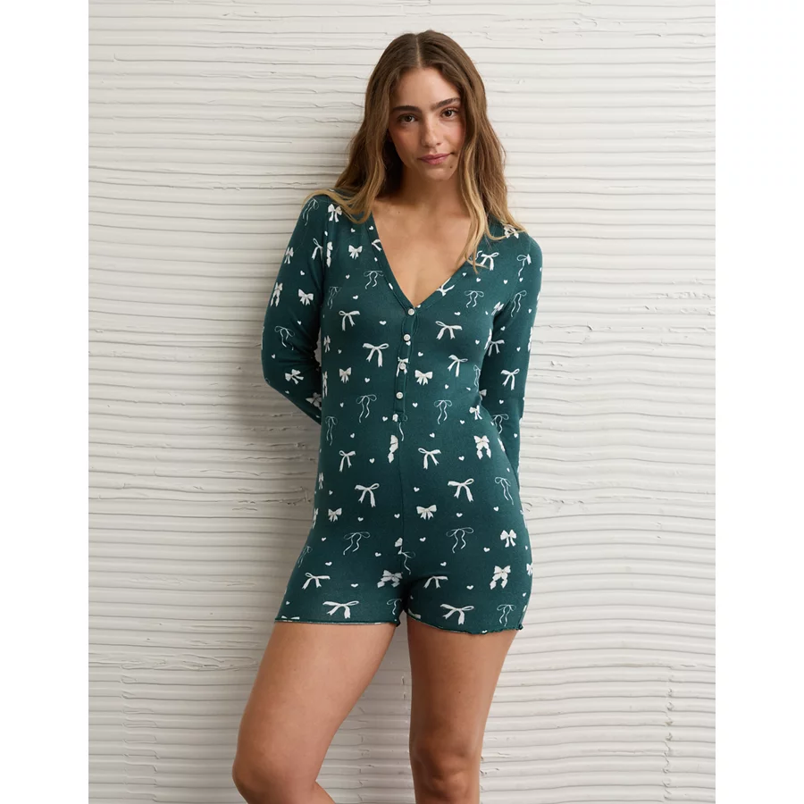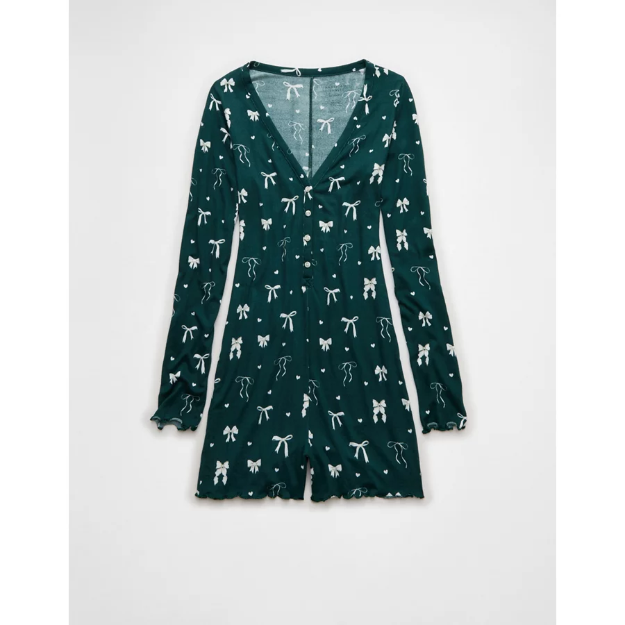 AE Luxe Plush Long Sleeve Romper – Deep Forest