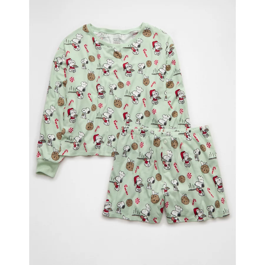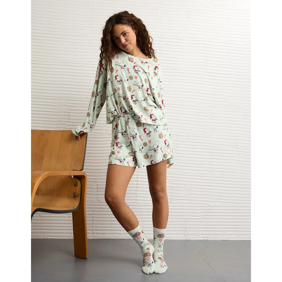 AE Luxe Plush Snoopy Holiday PJ Set – Mint