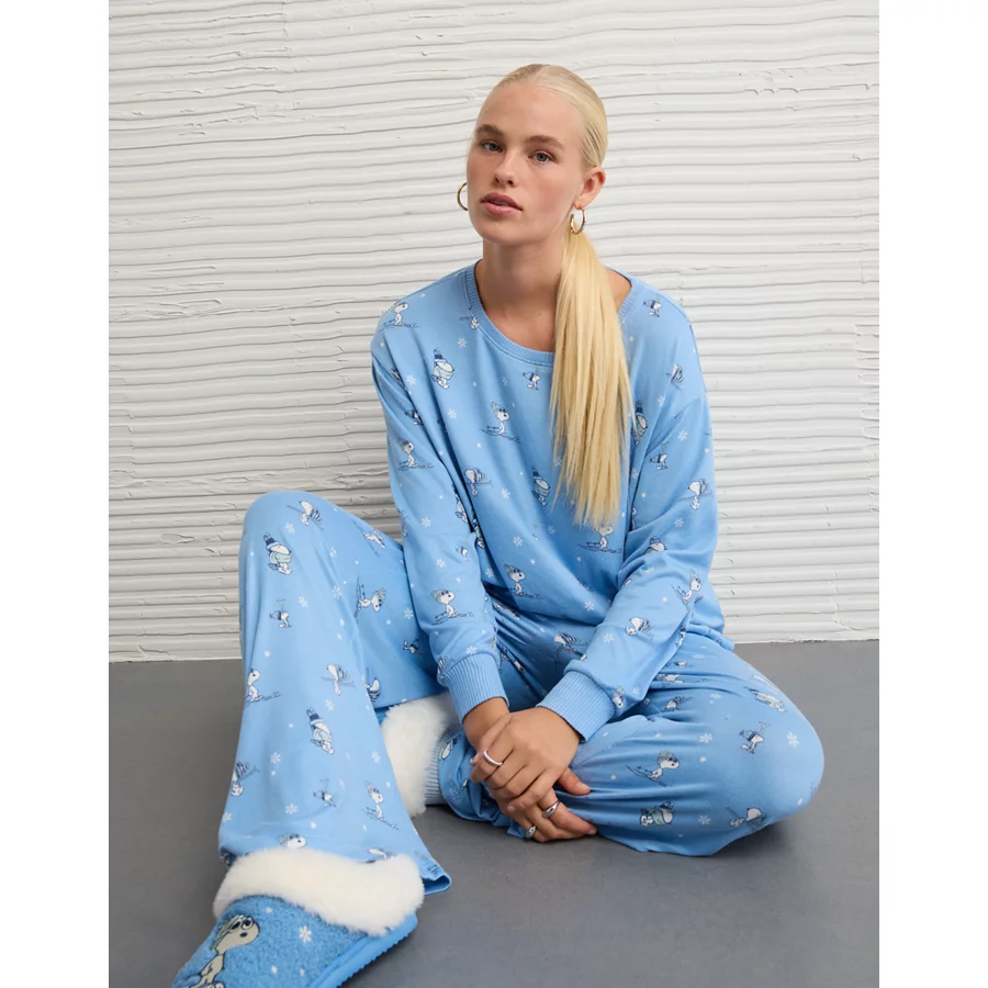 AE Luxe Plush Snoopy Long-Sleeve & Pant PJ Set – Gravity Blue