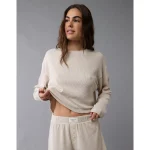 AE Luxe Plush Waffle Tee + Short Lounge Set – Cream