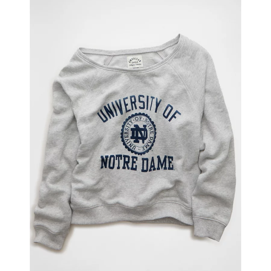 AE Notre Dame Fighting Irish Graphic Off The Shoulder Sweatshirt – Medium Heather Gray