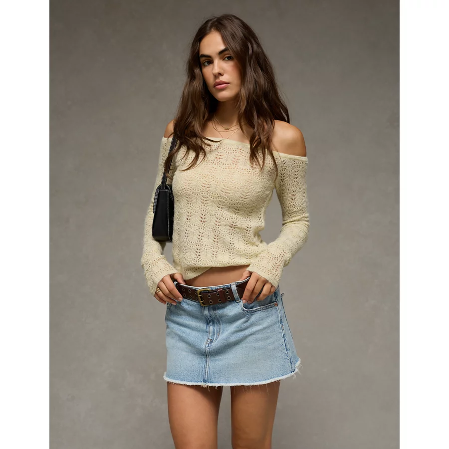 AE Off-The-Shoulder Smocked Mini Dress - Blue Vibe
