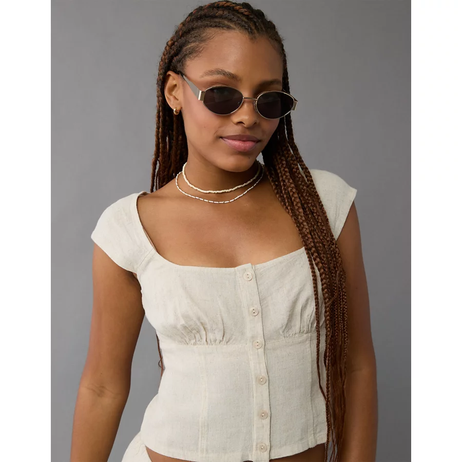 AE 6″ Stretch High-Waisted Pleated Trouser Short – Vintage Vanilla