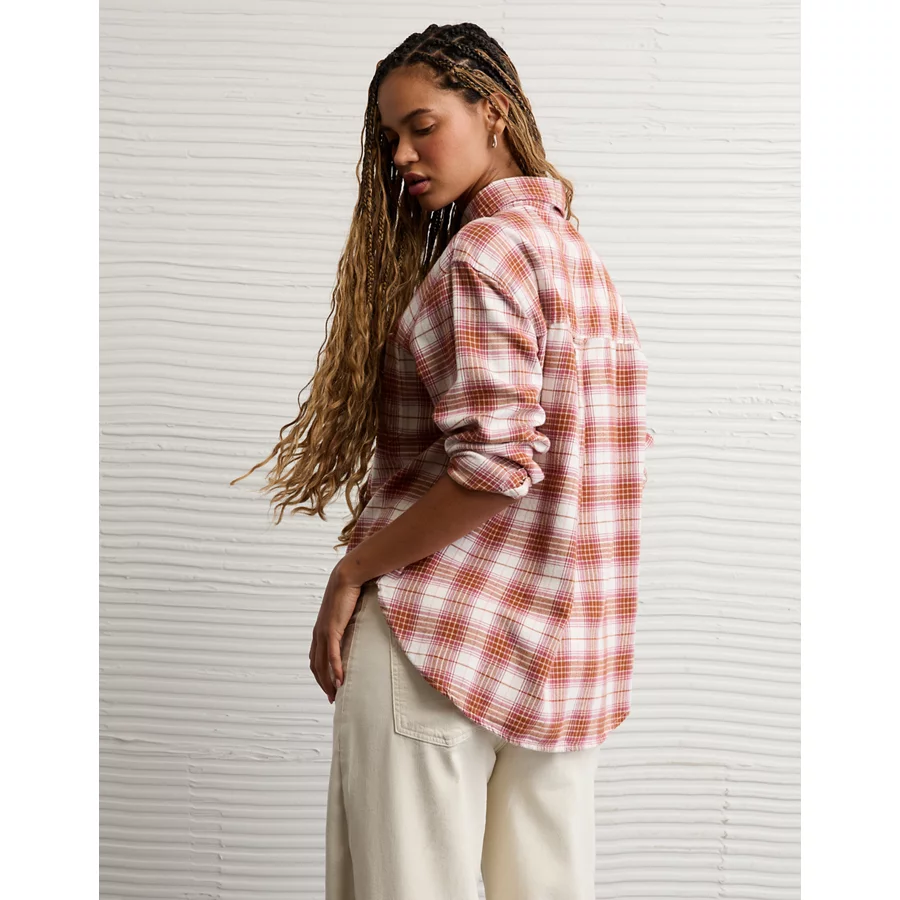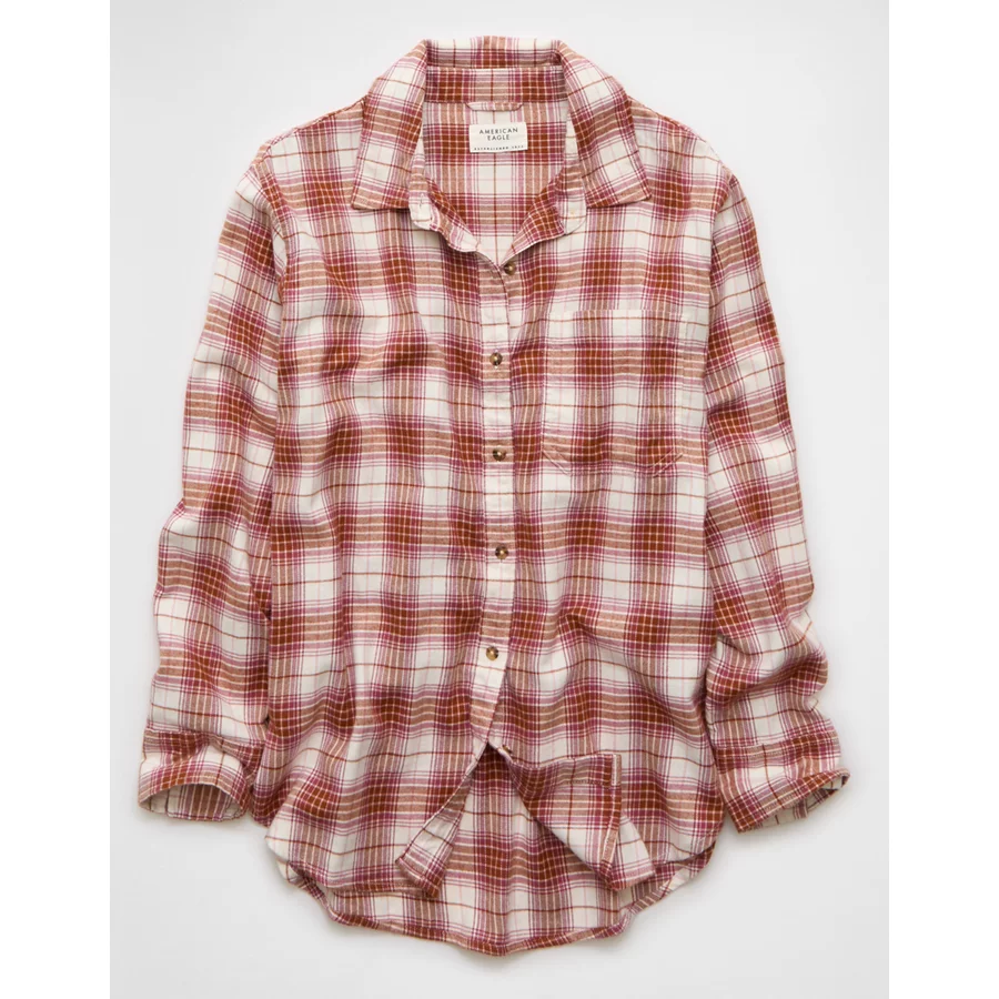 AE Oversized Flannel Shirt – Burgundy