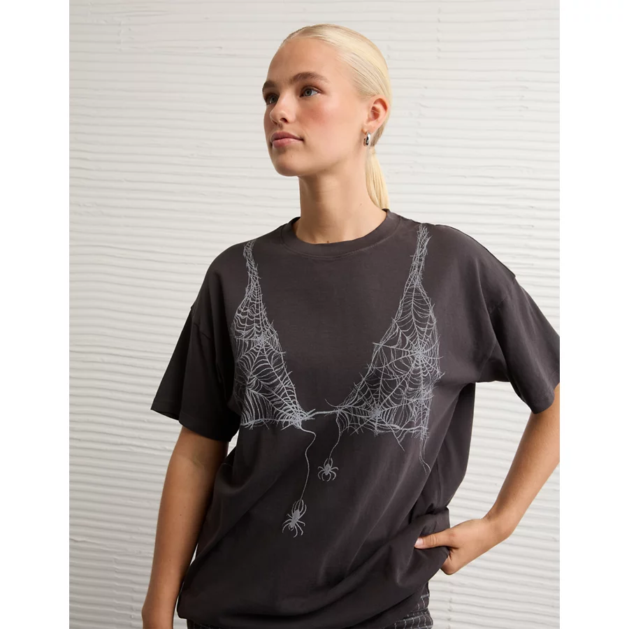 AE Oversized Halloween Graphic T-Shirt - Faded Black