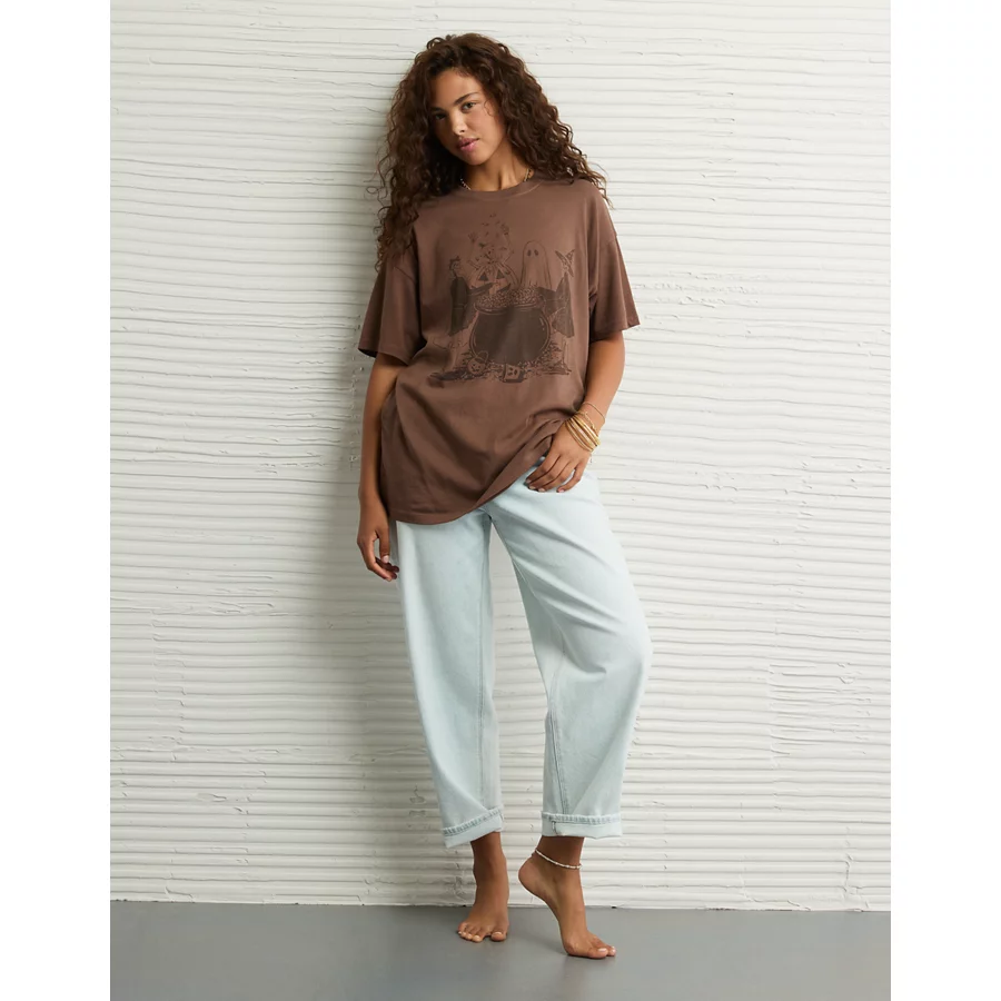 AE Oversized Halloween Graphic T-Shirt – Brown