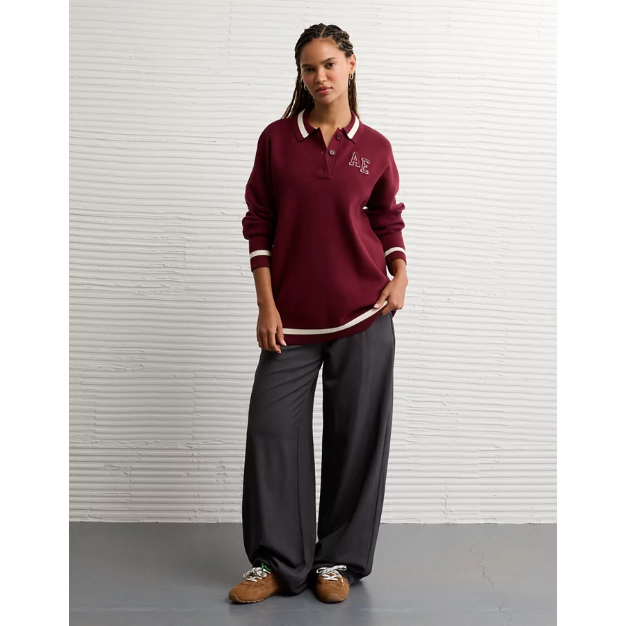 AE Oversized Polo Sweater – Wineberry