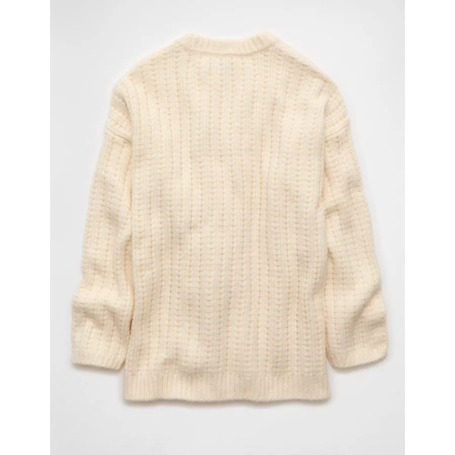 AE Oversized Waffle Sweater – Cream