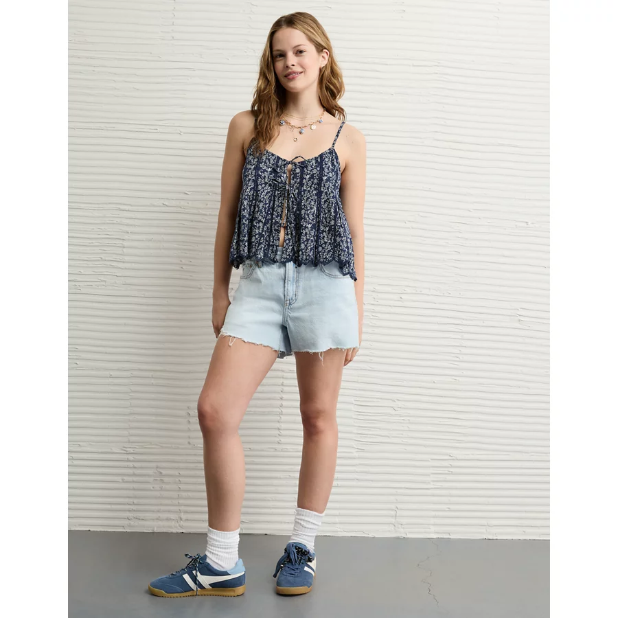 AE 8″ Dreamy Drape Stretch Low-Rise Baggy Jort – Medium Bright Indigo
