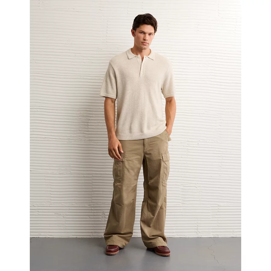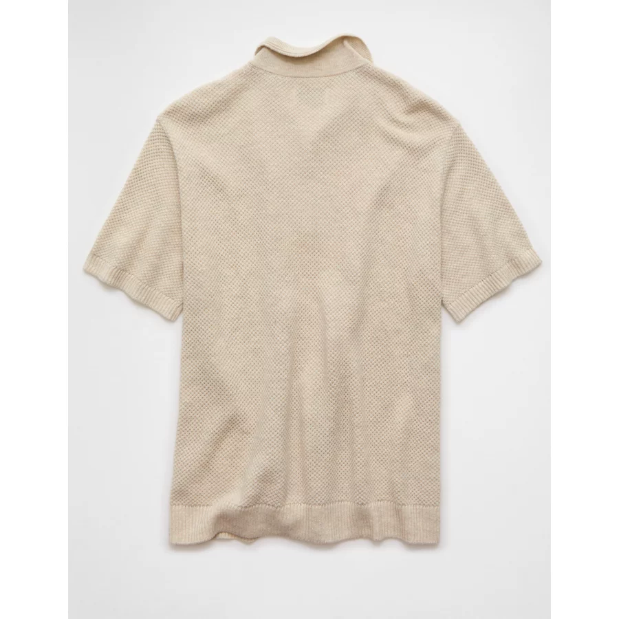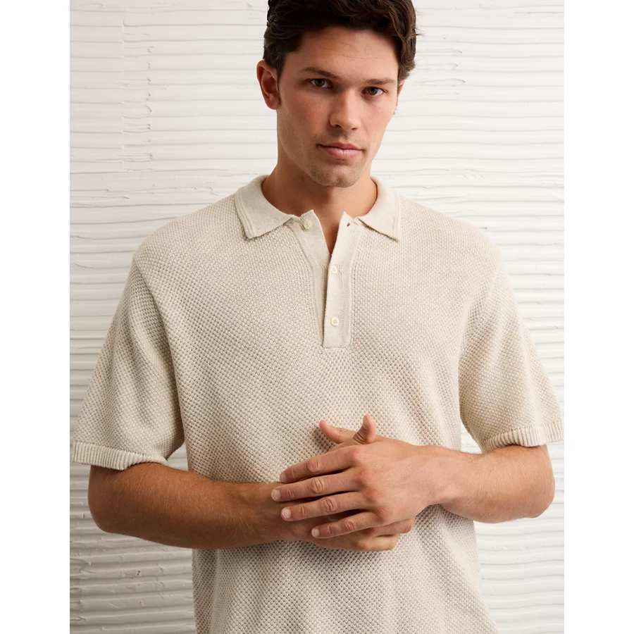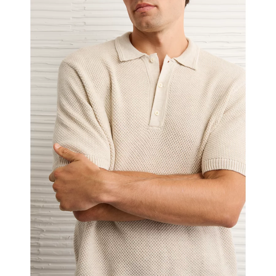AE Pique Sweater Polo Shirt – Oatmeal Heather