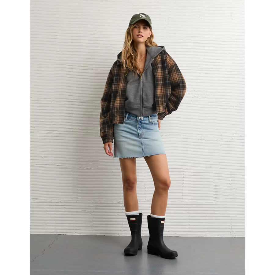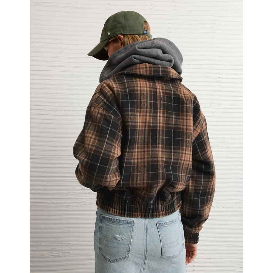 AE Plaid Bubble Bomber Jacket – Multi