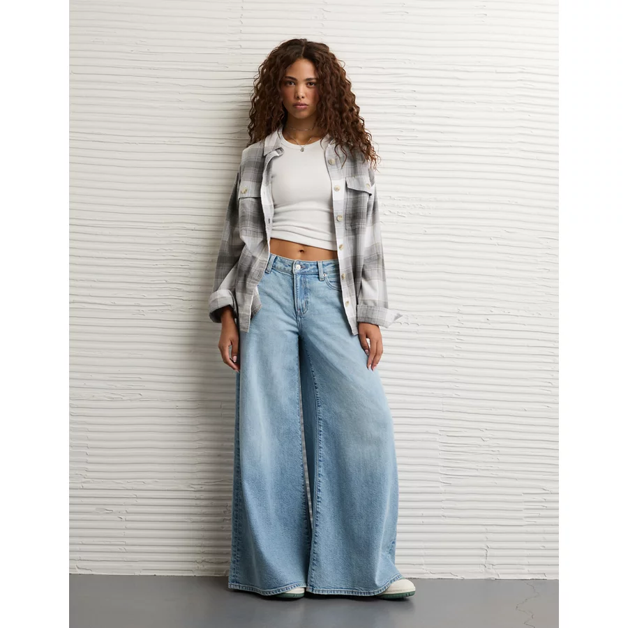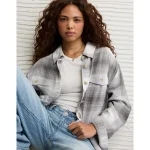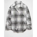 AE Plaid Button-Up Shirt – Gray