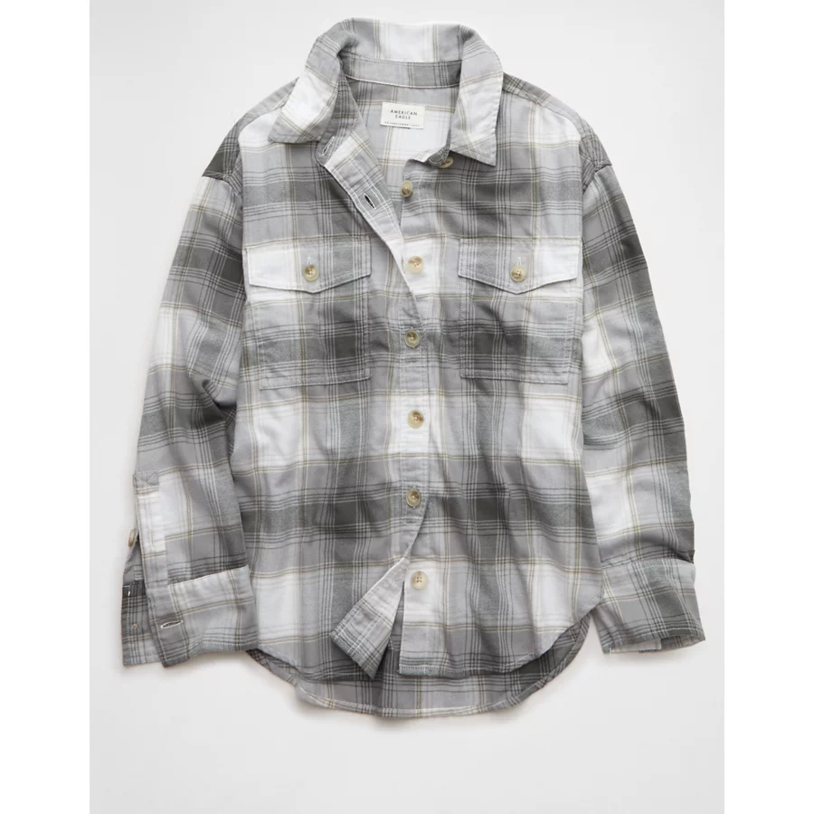 AE Plaid Button-Up Shirt - Grey