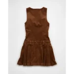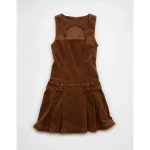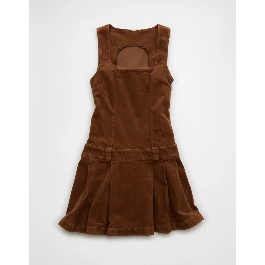 AE Pleated Corduroy Mini Dress – Brown