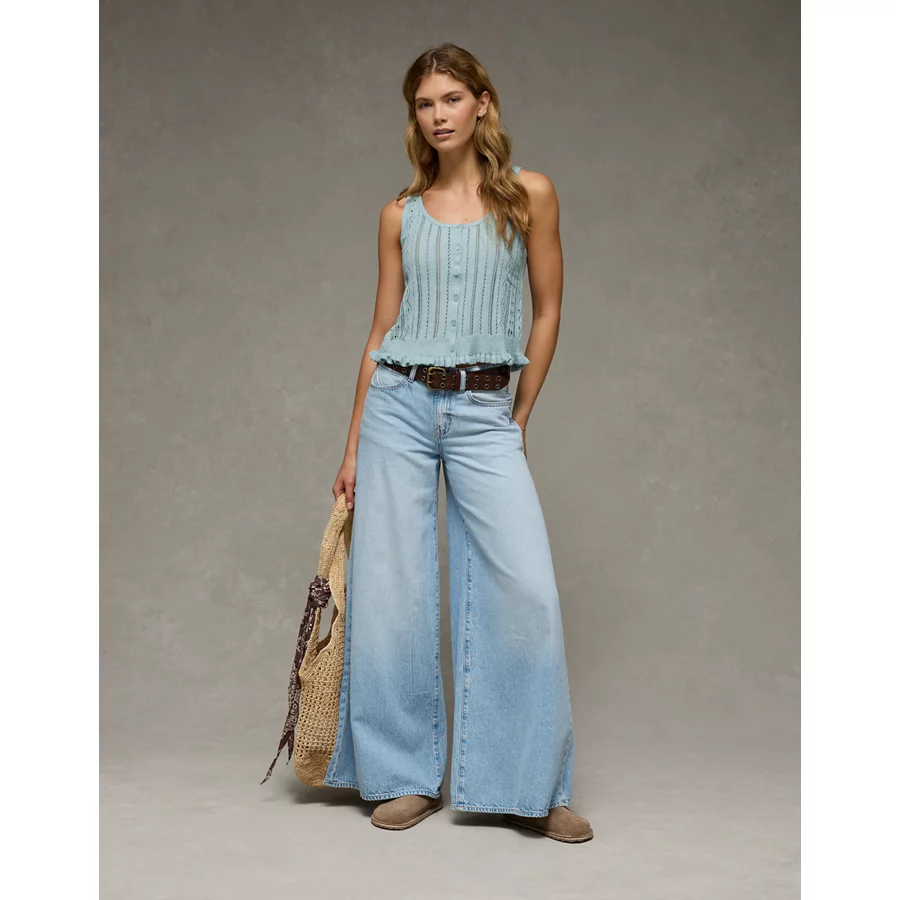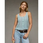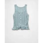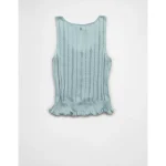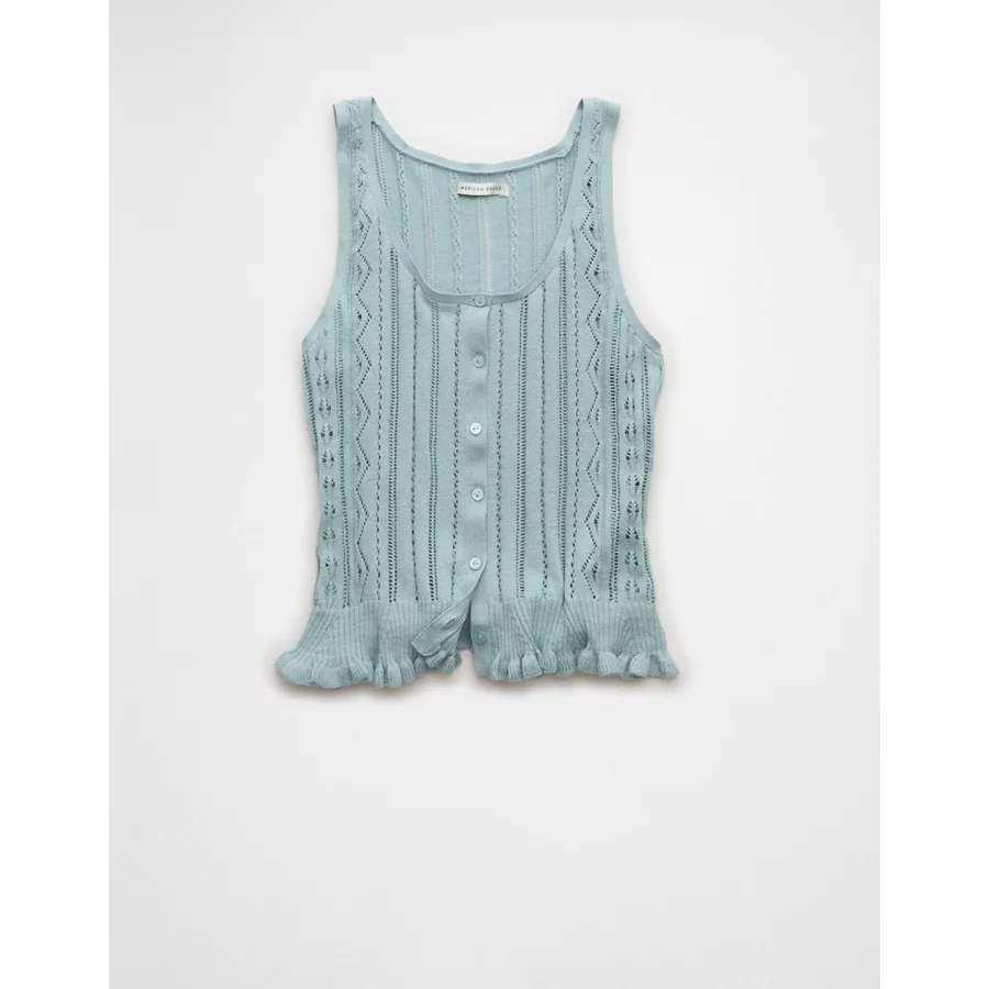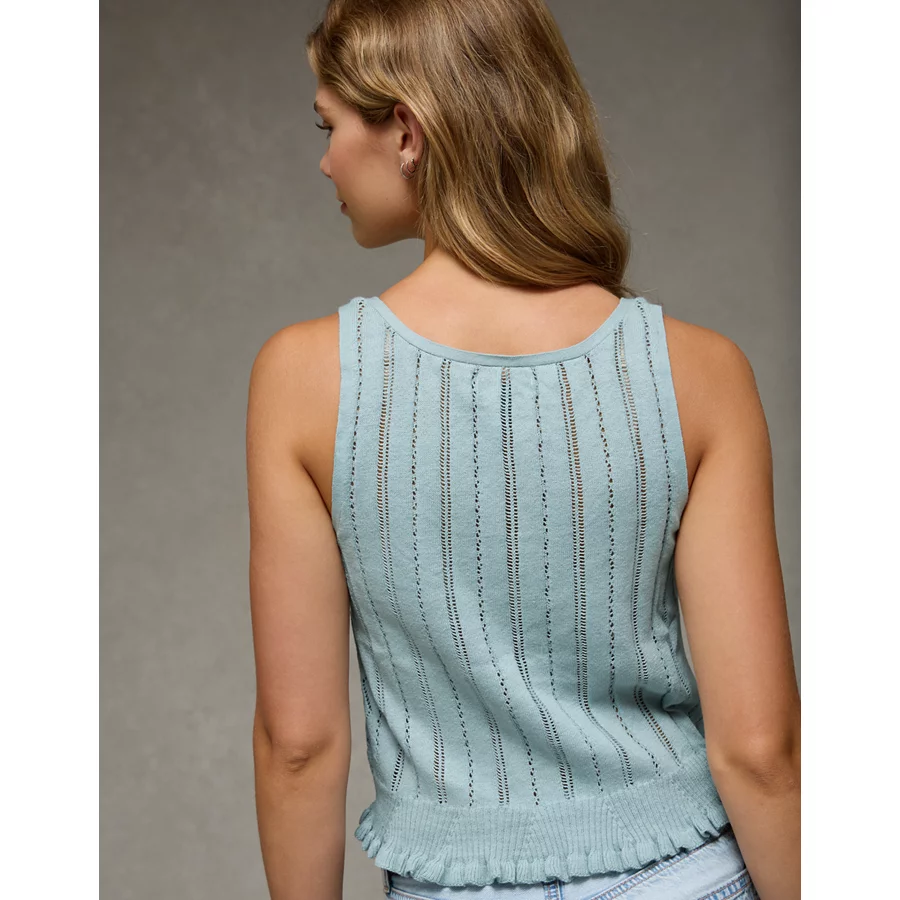 AE Pointelle Peplum Sweater Tank Top – Light Blue