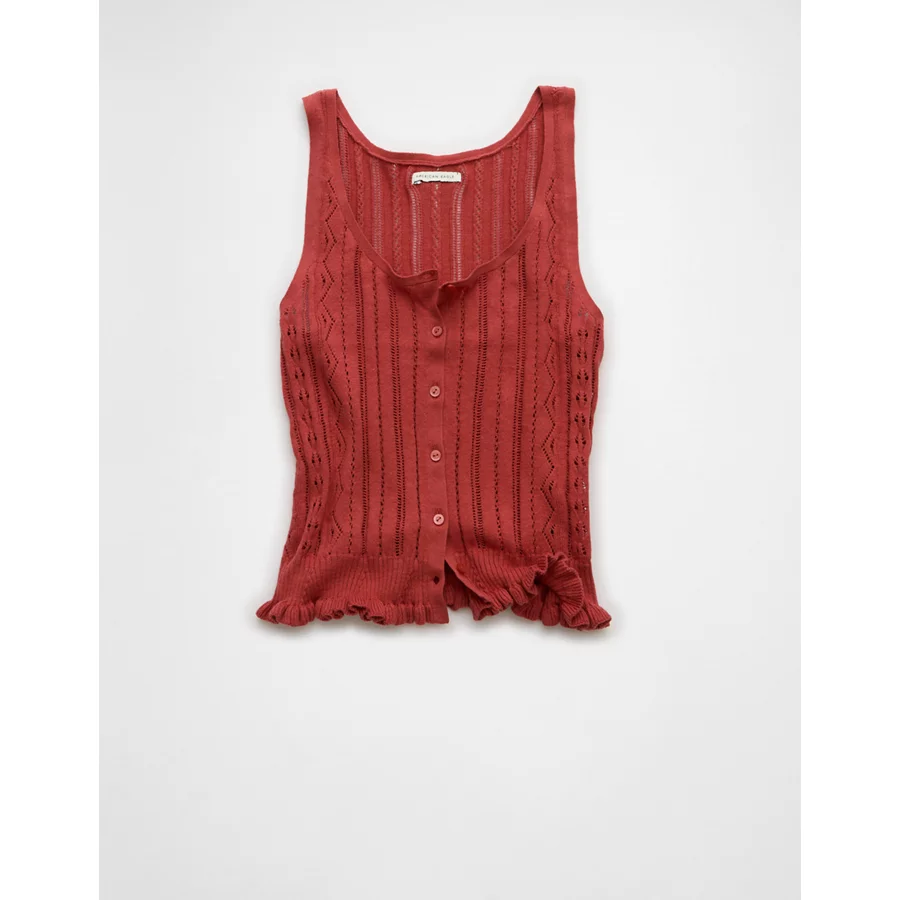 AE Pointelle Peplum Sweater Tank Top – Pink