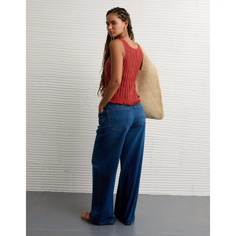 AE Pointelle Peplum Sweater Tank Top - Light Blue