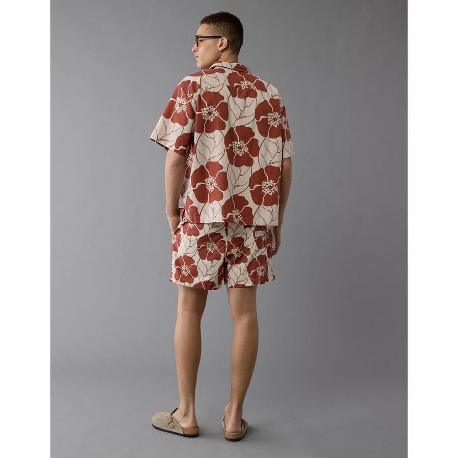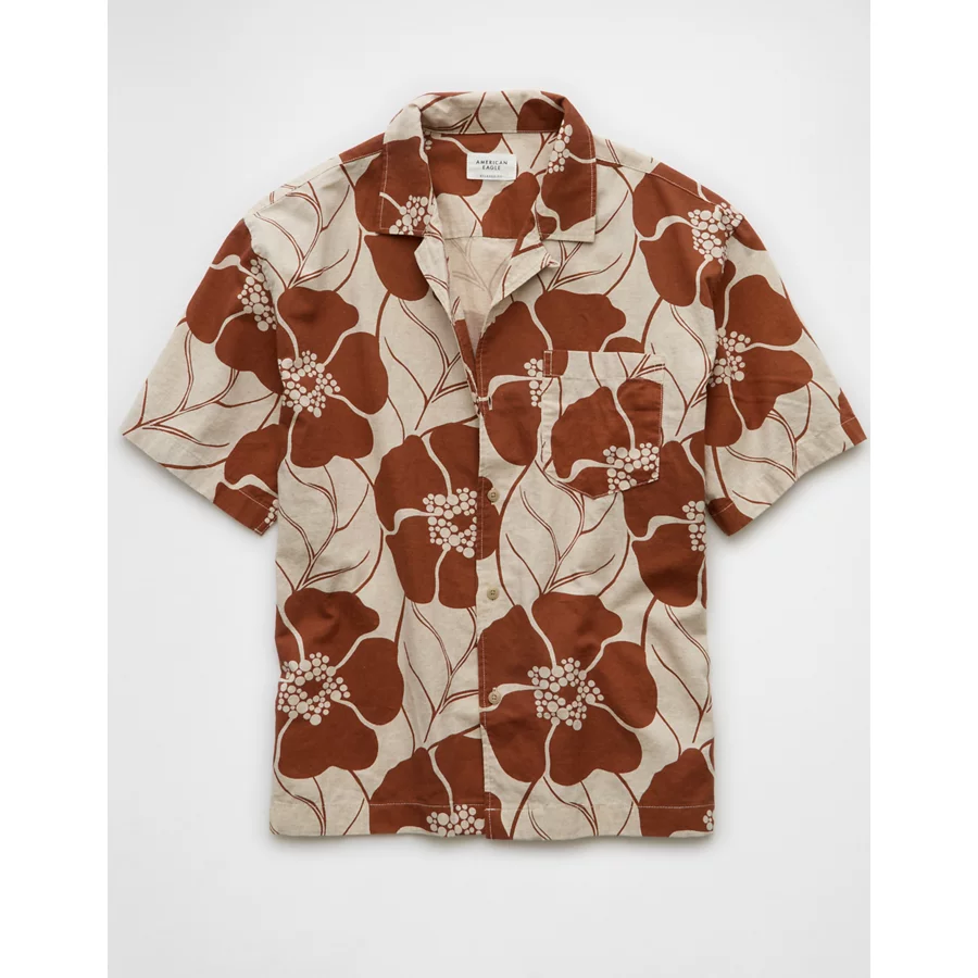 AE Poolside Linen-Blend Floral Button-Up Shirt - Cool White