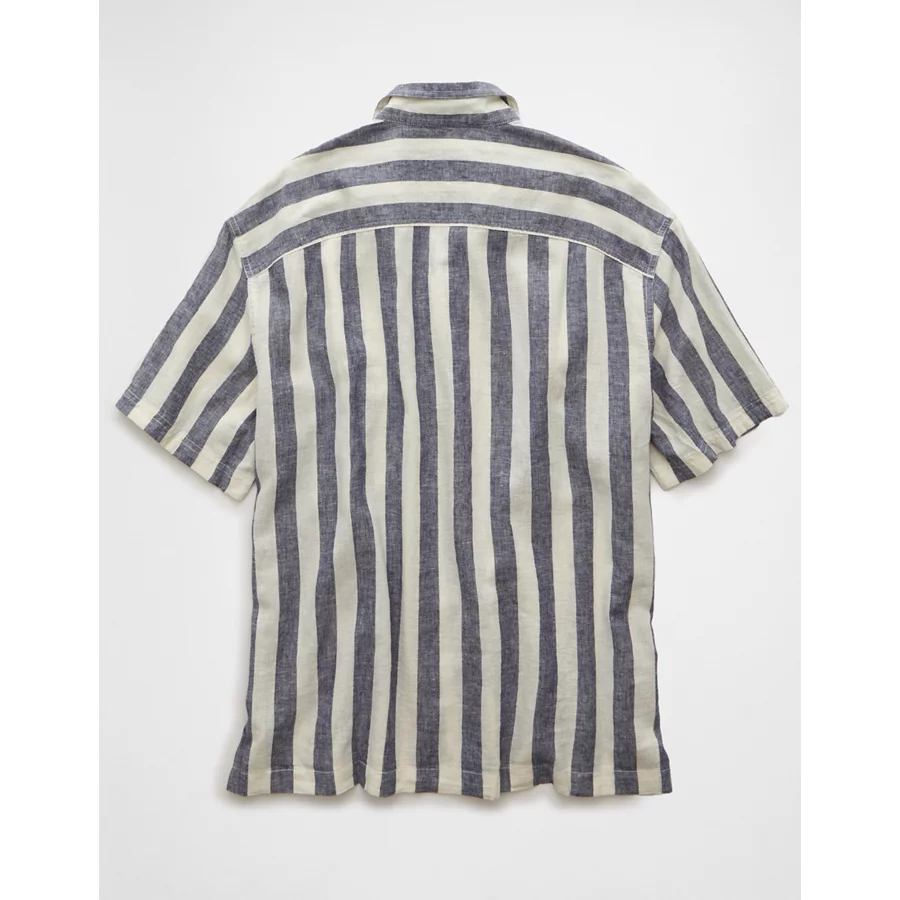 AE Poolside Linen-Blend Striped Button-Up Shirt – Black