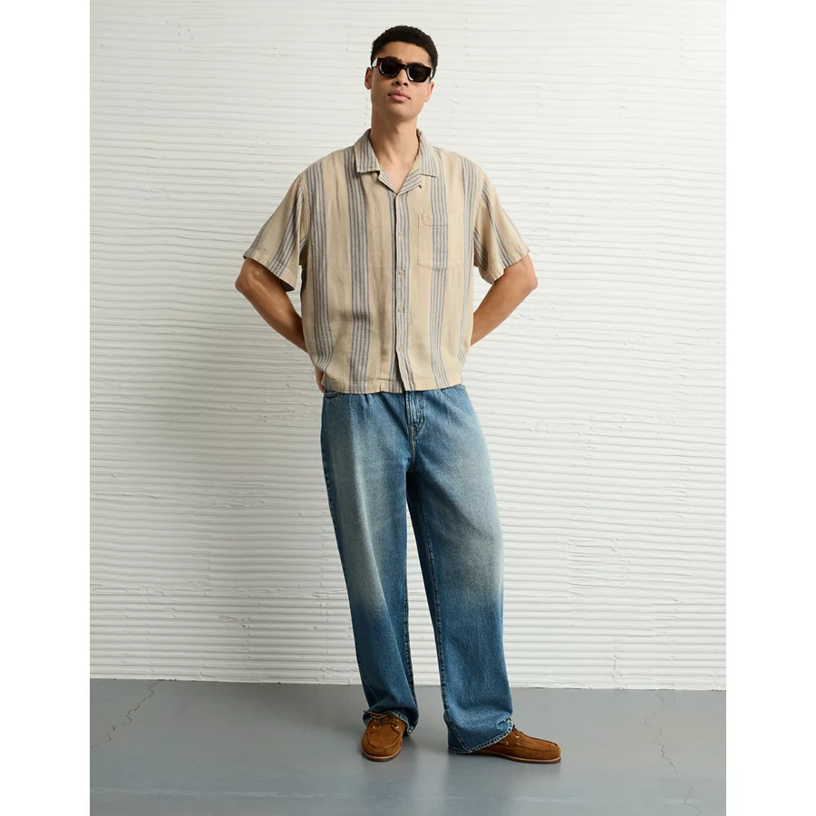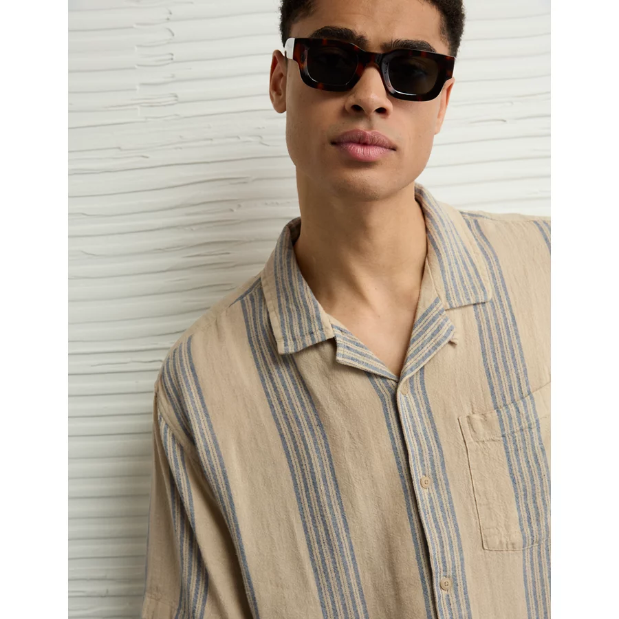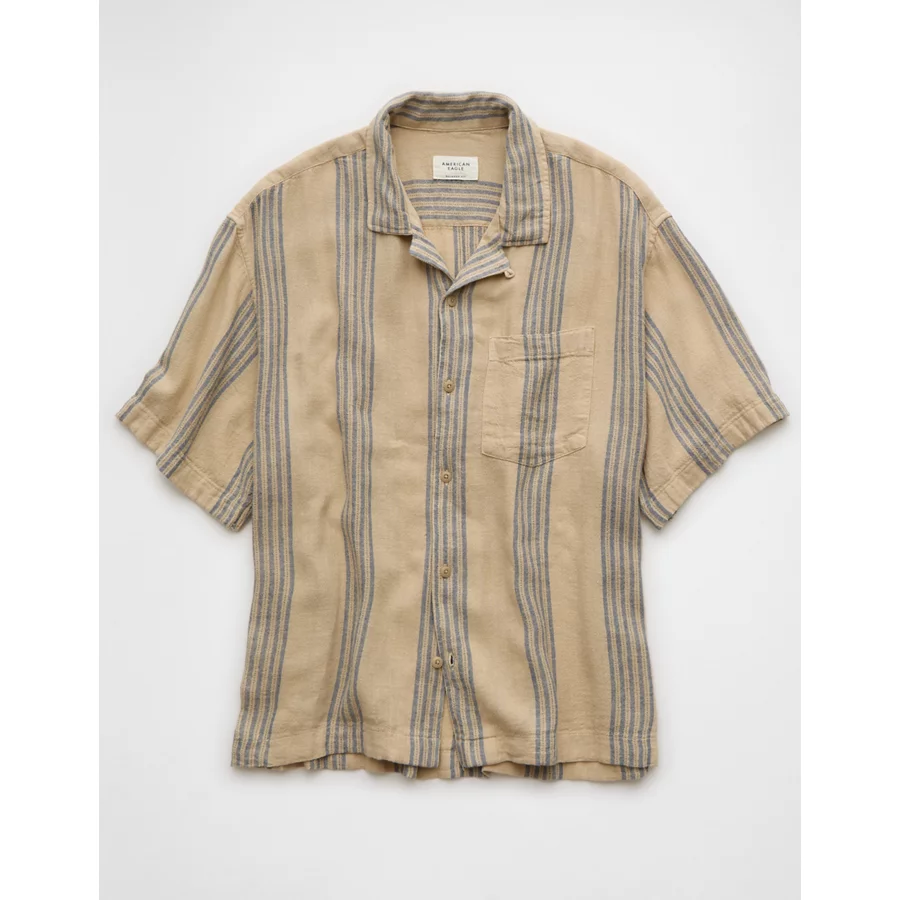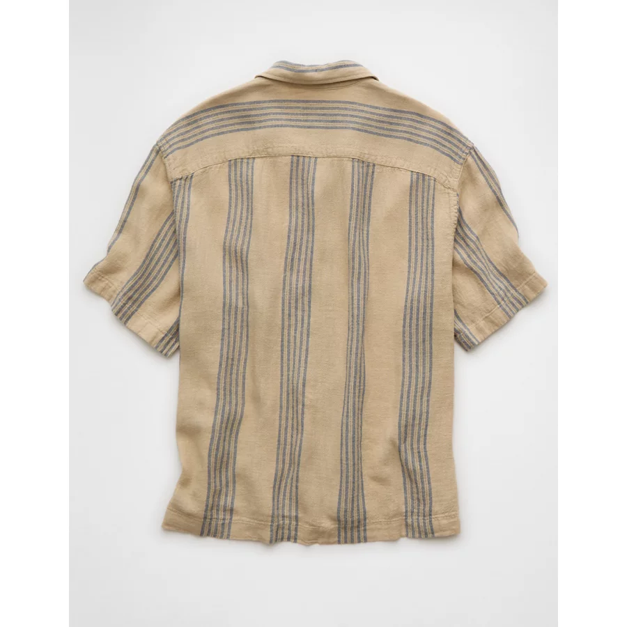 AE Poolside Linen-Blend Striped Button-Up Shirt – Light Khaki