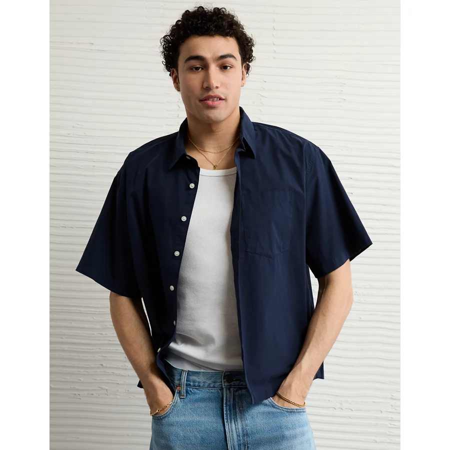AE Poolside Poplin Button-Up Shirt – Rich Navy