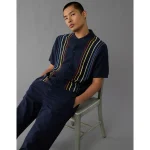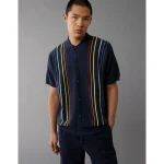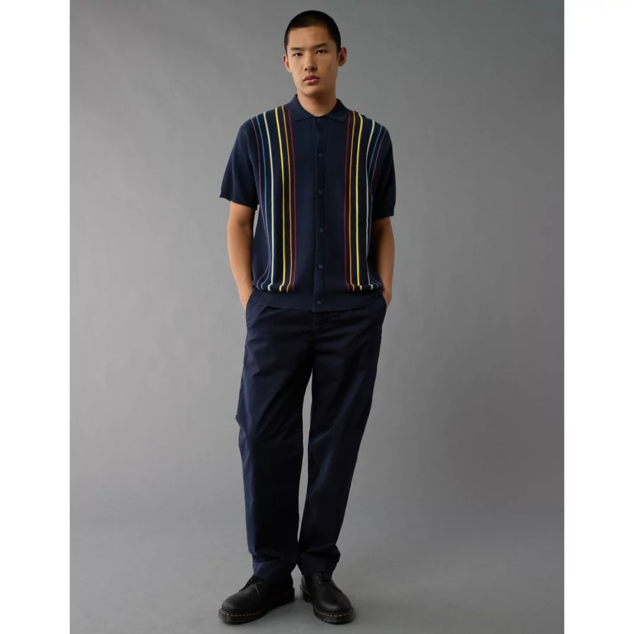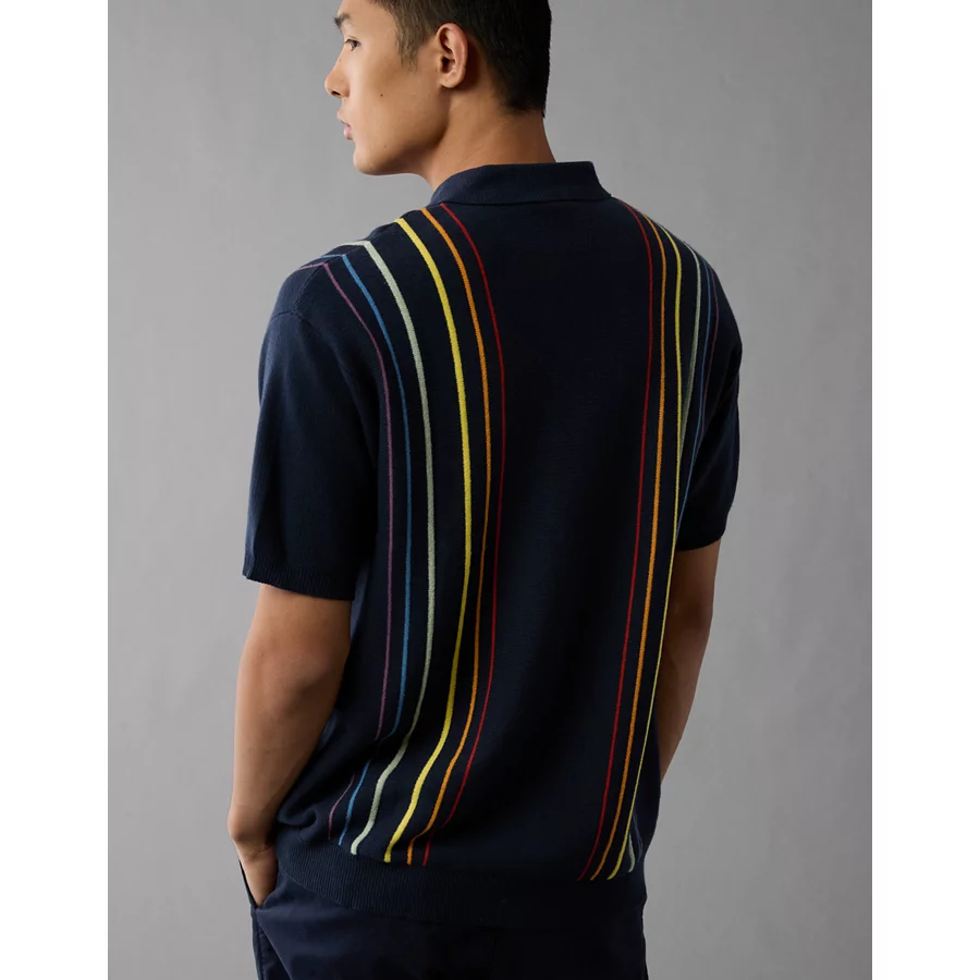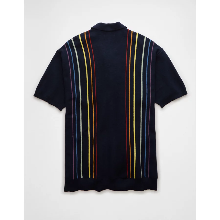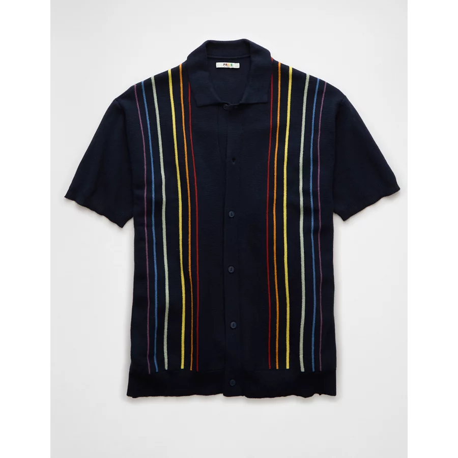 AE Pride Weekend Button-Up Sweater Polo Shirt – Navy