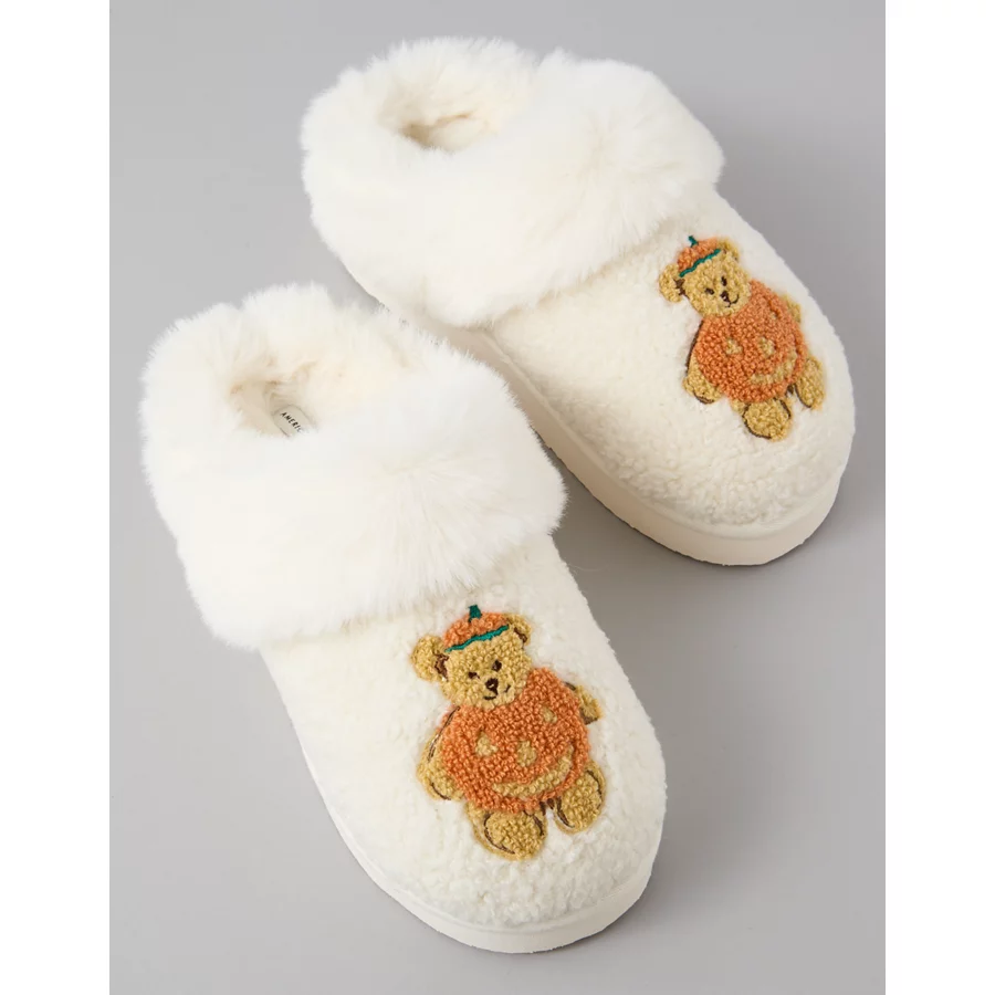 AE Pumpkin Teddy Bear Scuff Slipper – Ivory