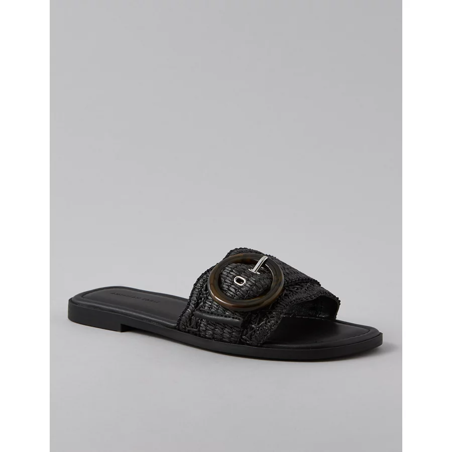 AE Raffia Buckle Slide Sandal – Black