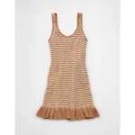 AE Ruffle Hem Striped Mini Sweater Dress – Cream