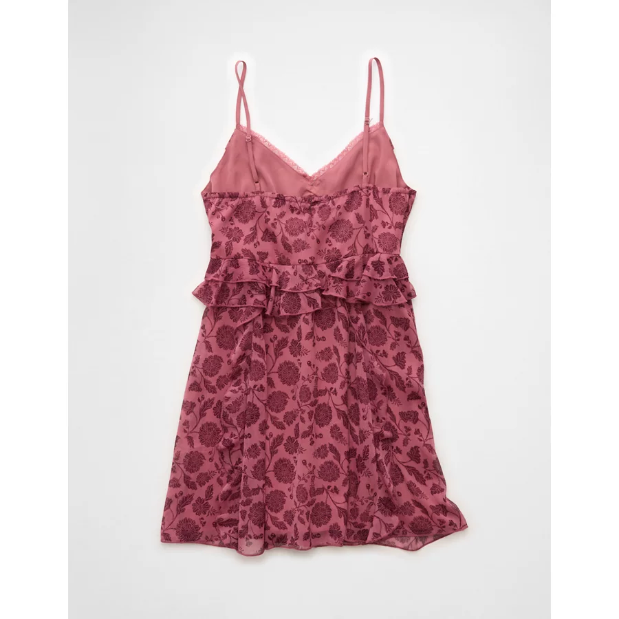 AE Ruffle Lace Mini Dress – Burgundy