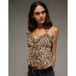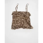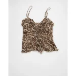 AE Ruffle Tie-Front Cami Top – Brown