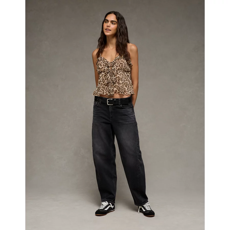 AE Ruffle Tie-Front Cami Top - Black