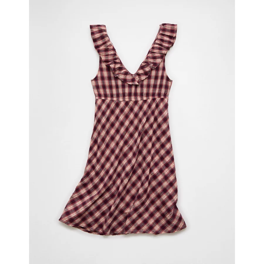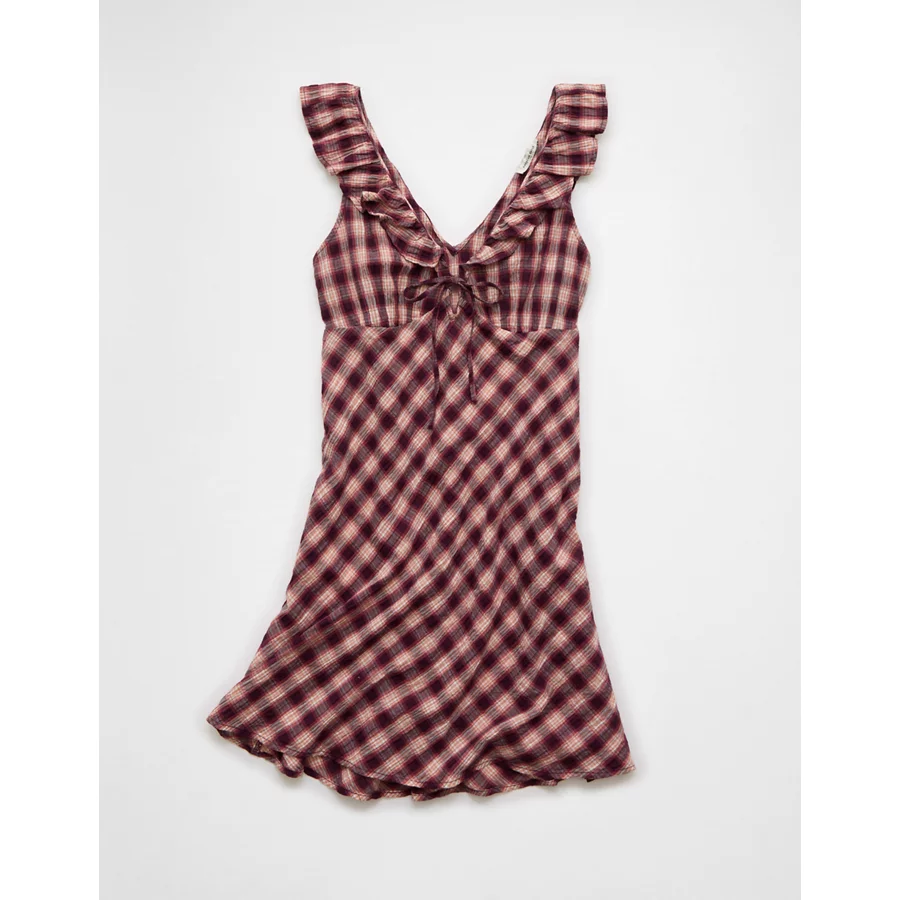 AE Ruffle Tie-Front Mini Dress – Burgundy