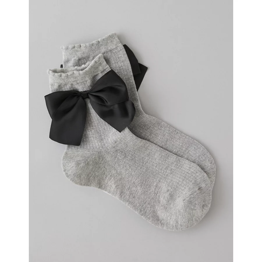 AE Satin Bow Cropped Crew Socks – Charcoal Heather