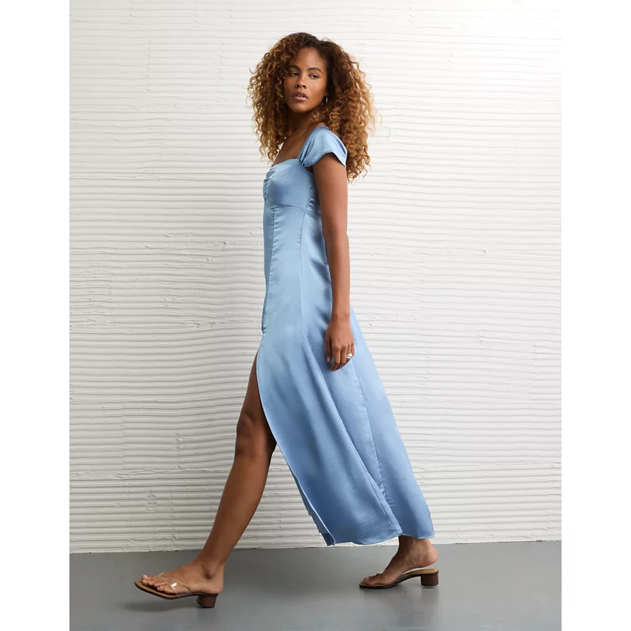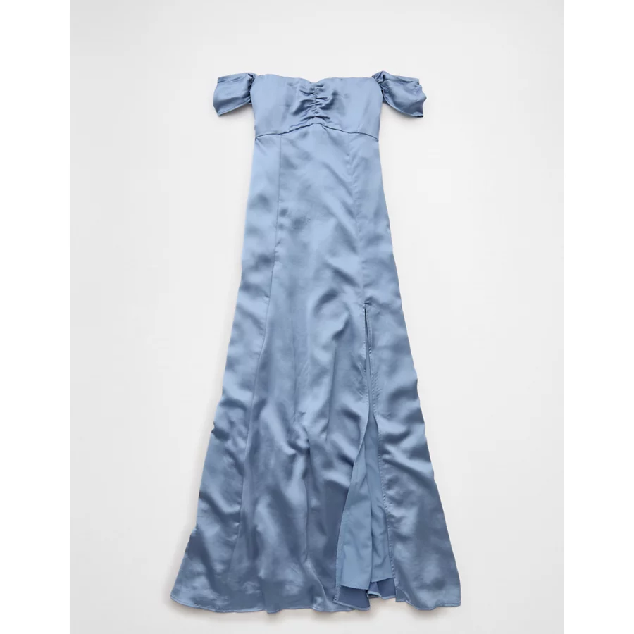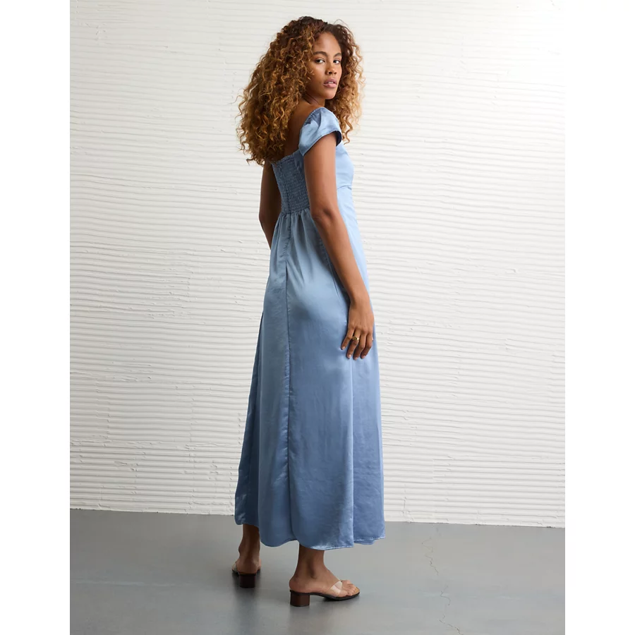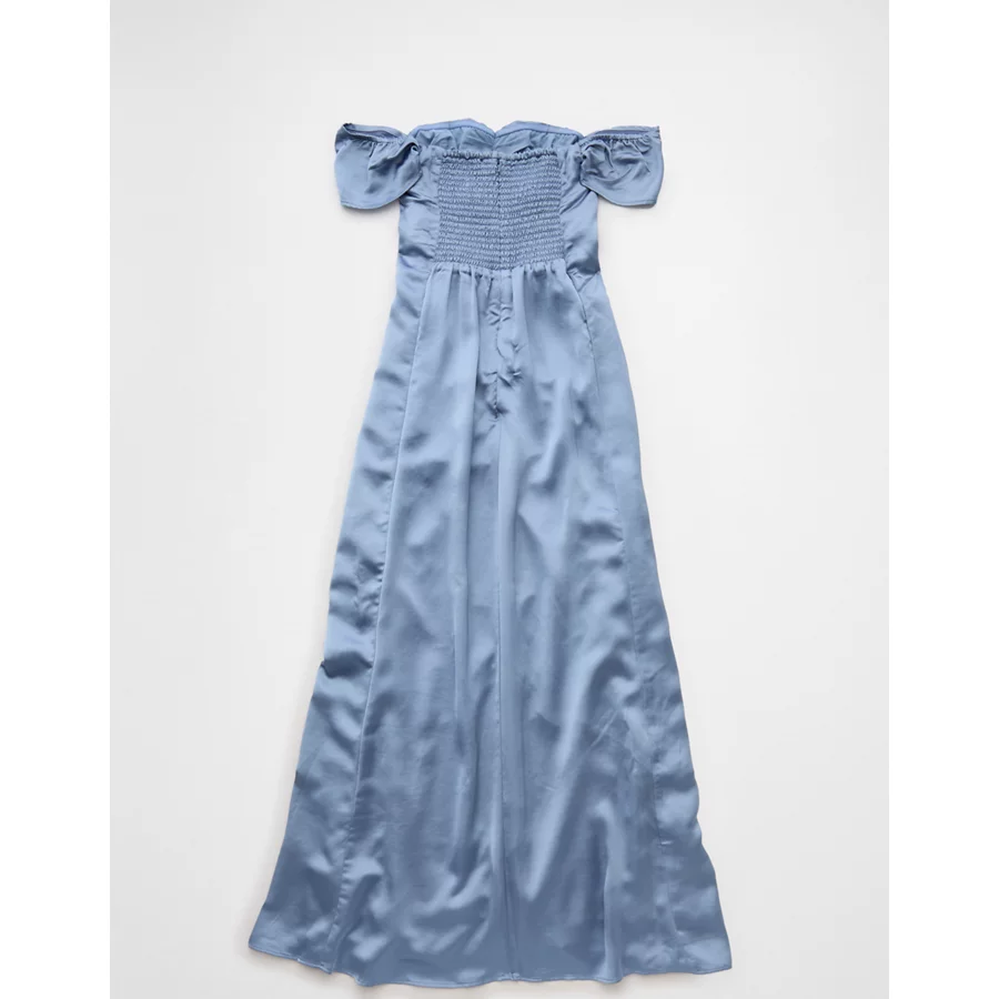 AE Satin Sweetheart Off-The-Shoulder Maxi Dress – Navy