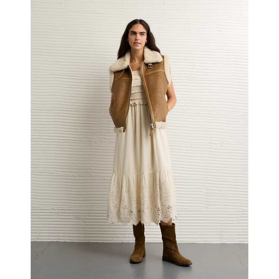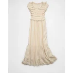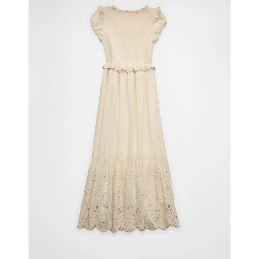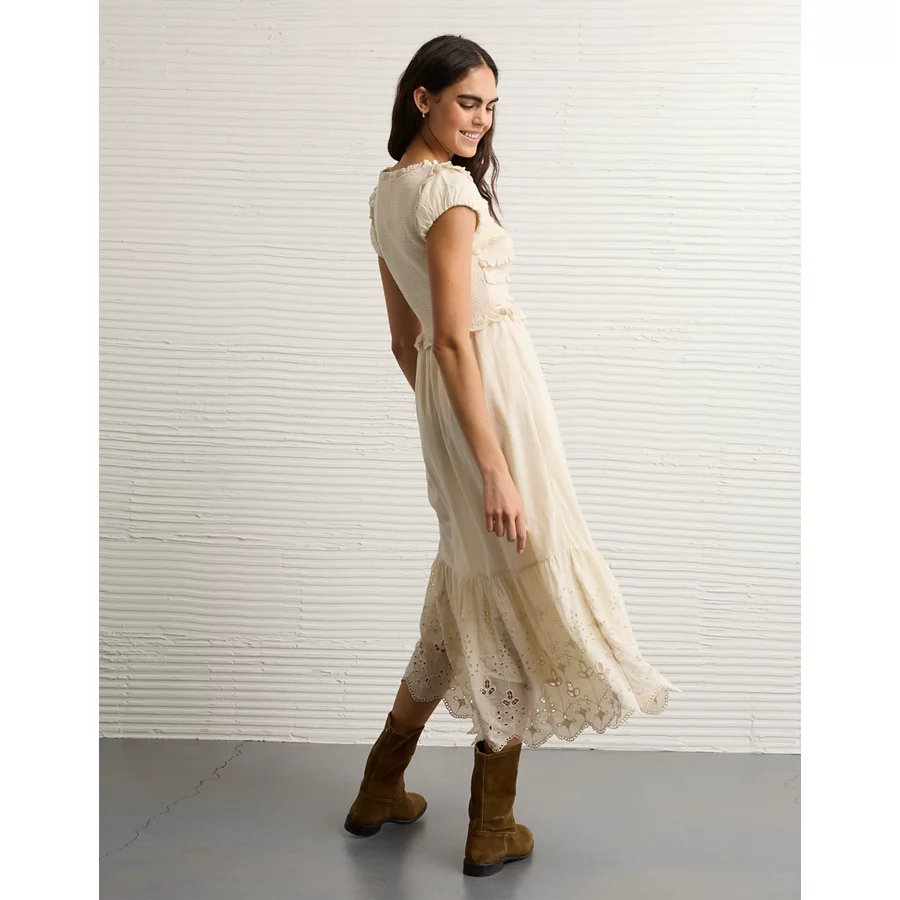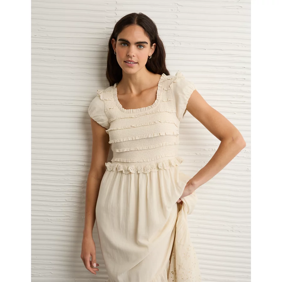 AE Scoop Neck Smocked Midi Dress – Cream
