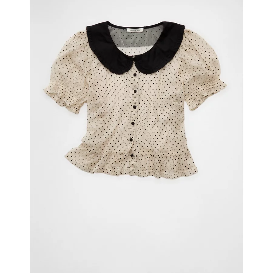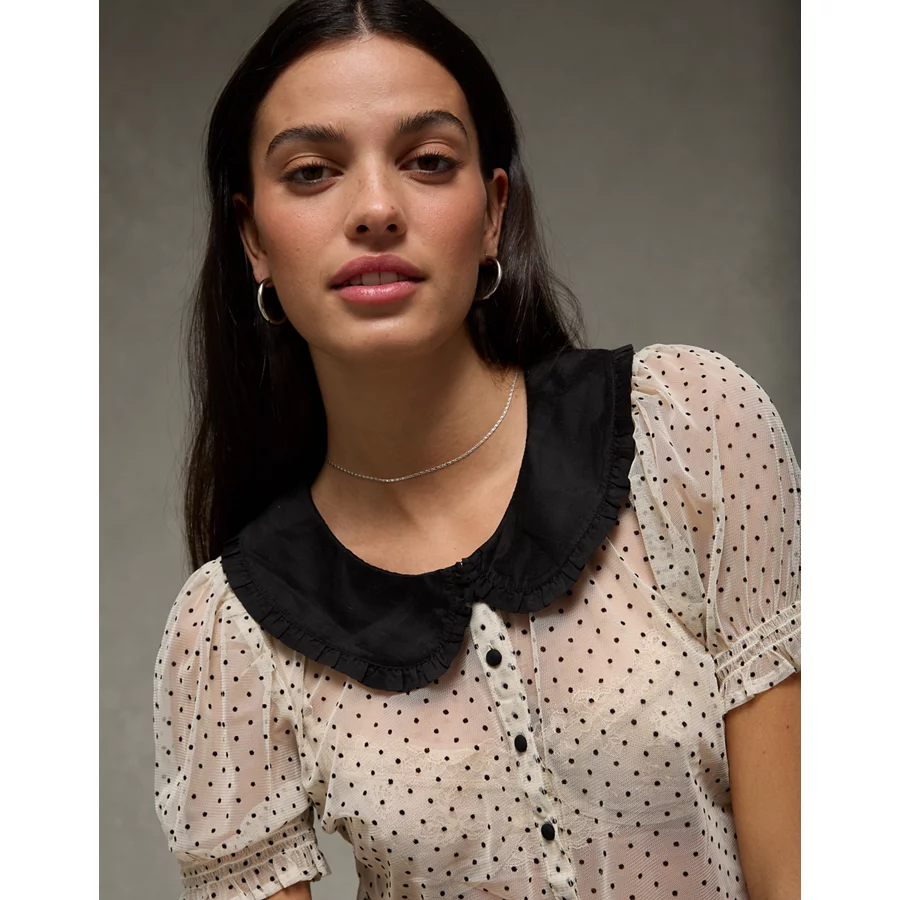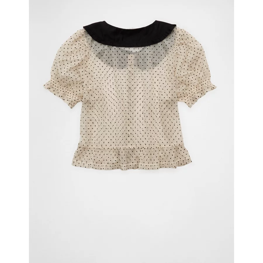 AE Short Sleeve Sheer Blouse – Cream