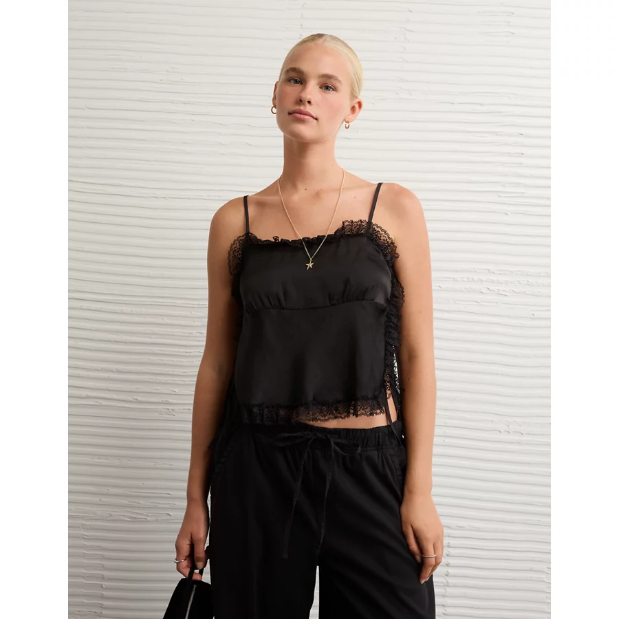 AE Side-Tie Lace Tank Top – Black