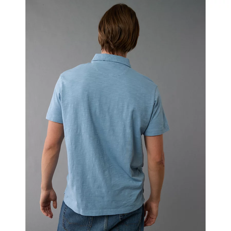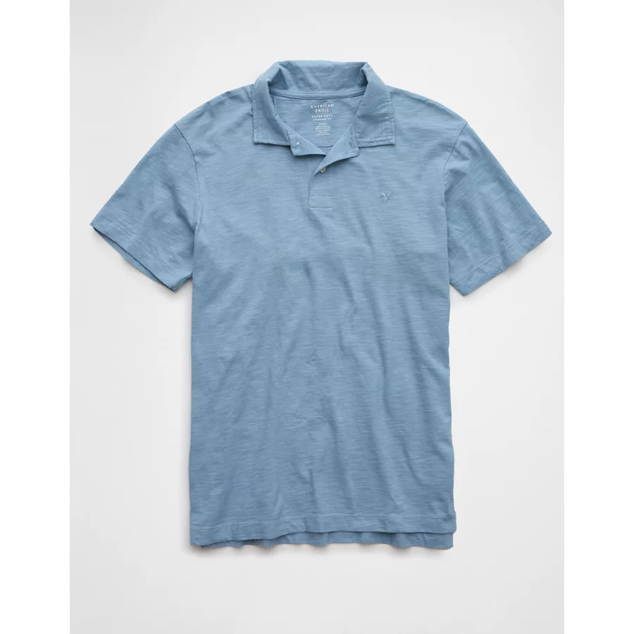 Super soft jersey with added stretchPolo collar with button placketEagle logoStripesThis is Real Good: Made with the planet in mind