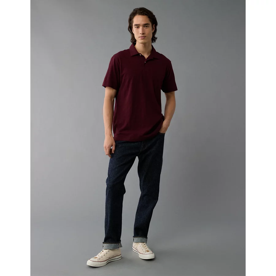 Super soft jersey with added stretchPolo collar with button placketEagle logoStripesThis is Real Good: Made with the planet in mind