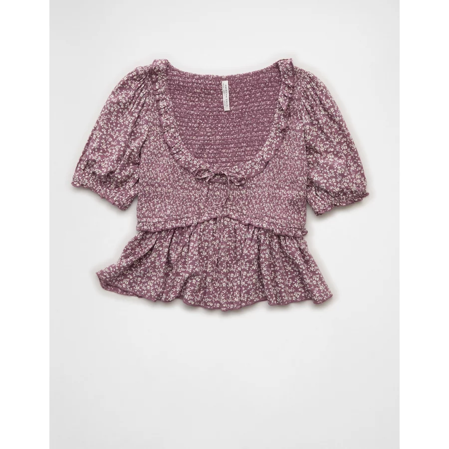 AE Smocked Babydoll Bow Tank Top - Chocolate