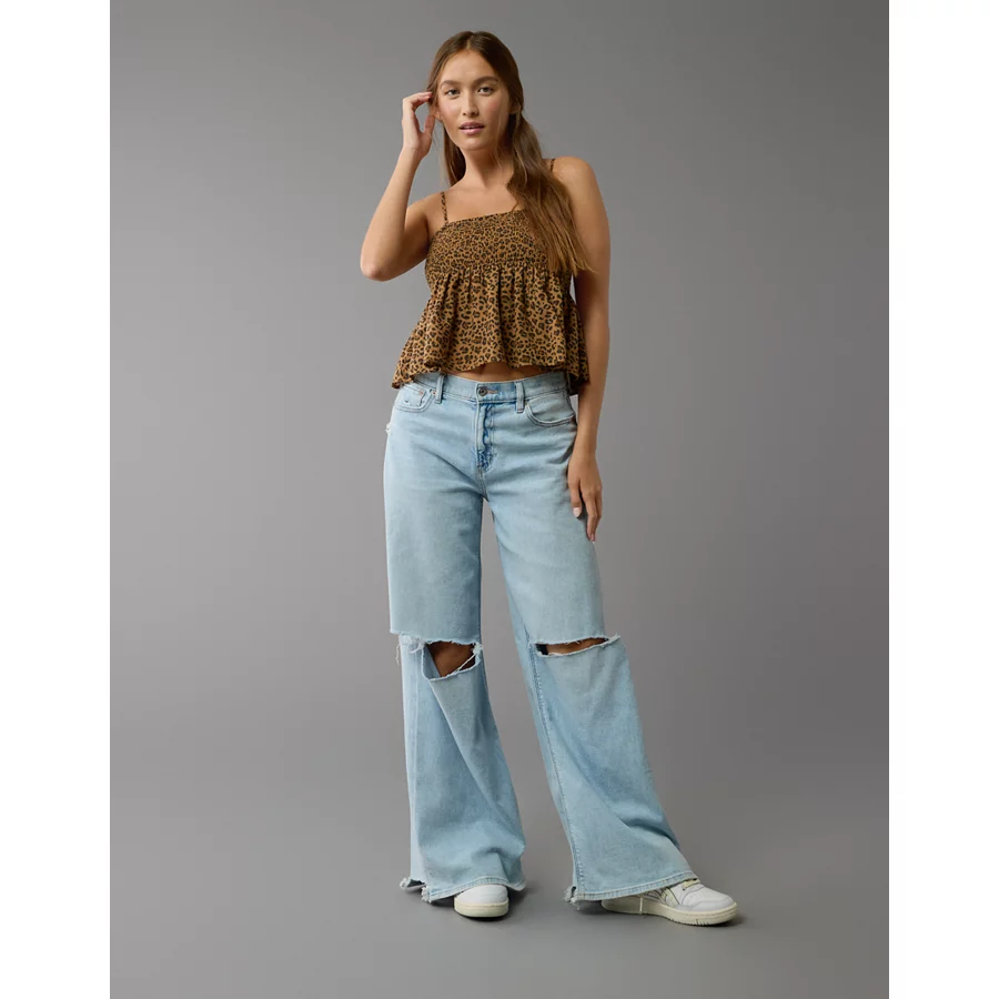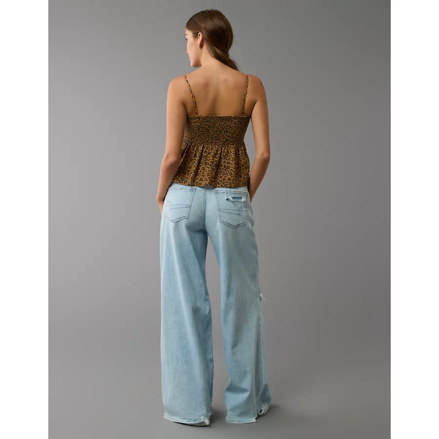 AE Smocked Babydoll Leopard Cami Tank Top – Brown
