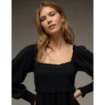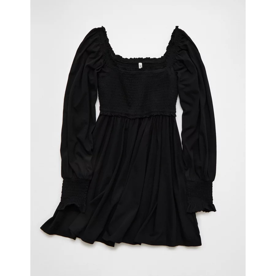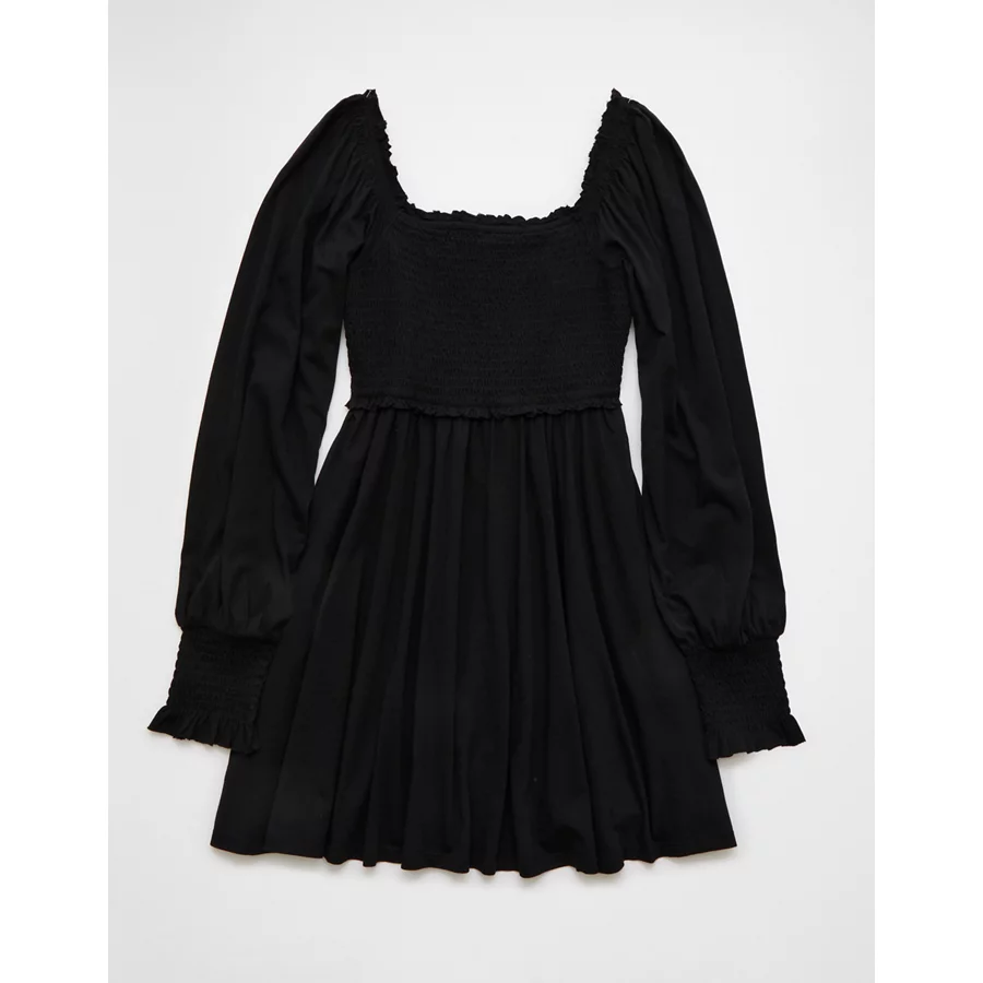 AE Smocked Puff Sleeve Mini Dress – Black